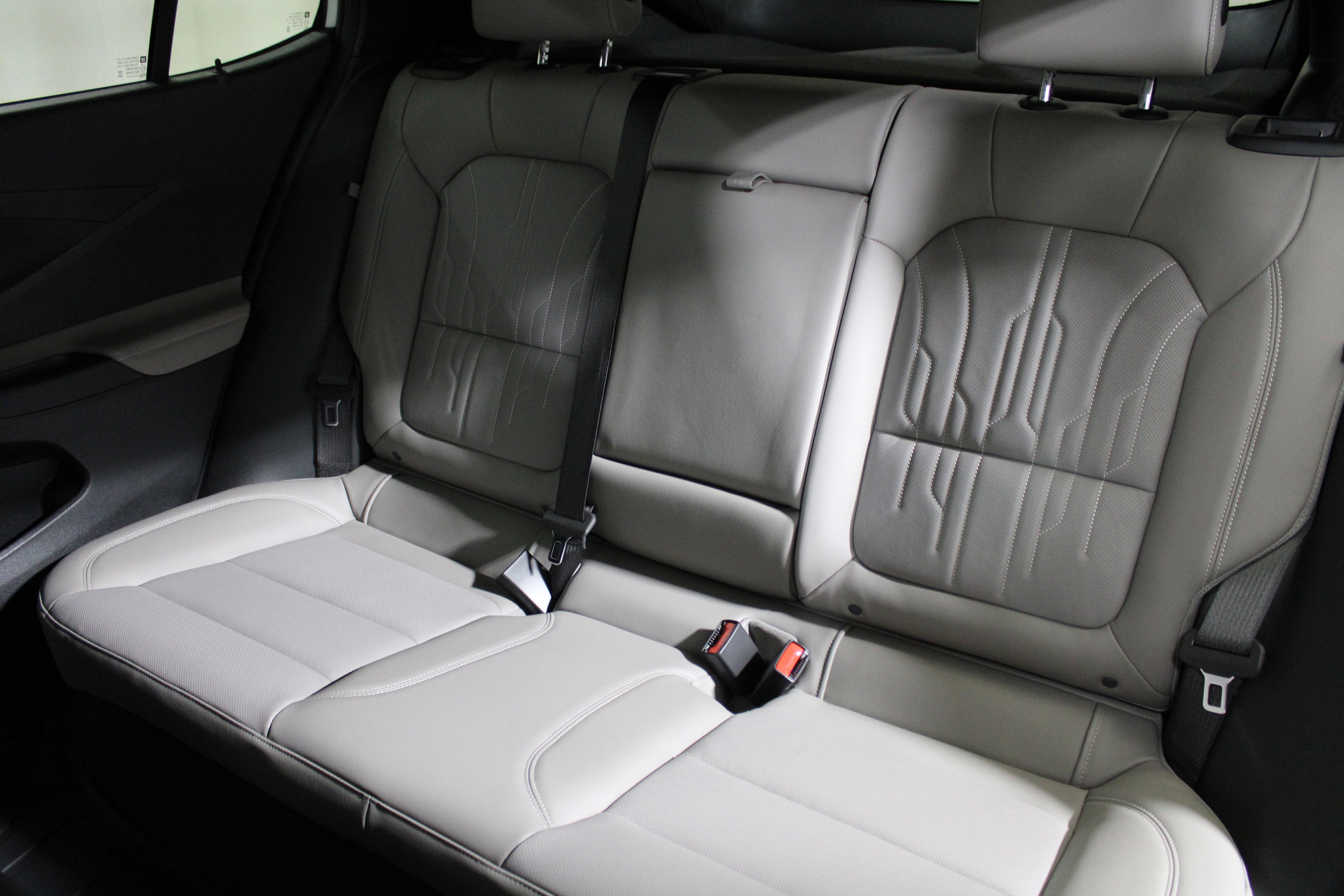 PEBBLE GRAY SEATS WITH EBONY INTERIOR AND WHISPER BEIGE STITCHING
