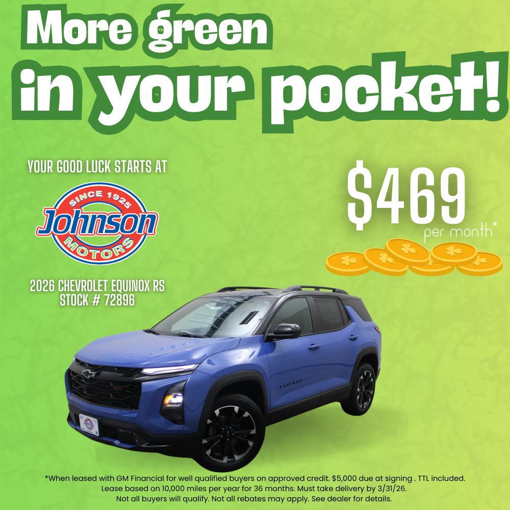 *When leased with GM Financial for well qualified buyers on approved credit. $5,000 due at signing . TTL included. Lease based on 10,000 miles per year for 36 months. Must take delivery by 3/31/26. Not all buyers will qualify. Not all rebates may apply. See dealer for details.