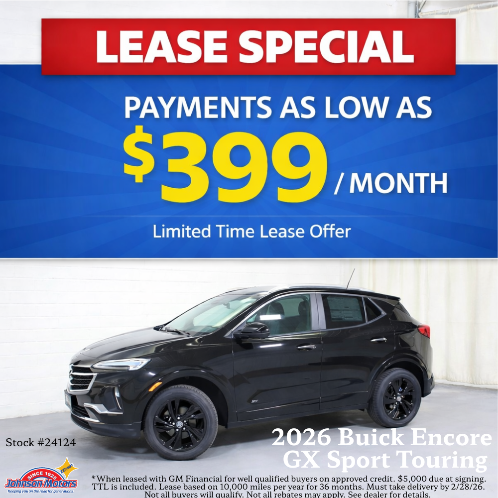 *When leased with GM Financial for well qualified buyers on approved credit. $5,000 due at signing. TTL is included. Lease based on 10,000 miles per year for 36 months. Must take delivery by 2/28/26. Not all buyers will qualify. Not all rebates may apply. See dealer for details.