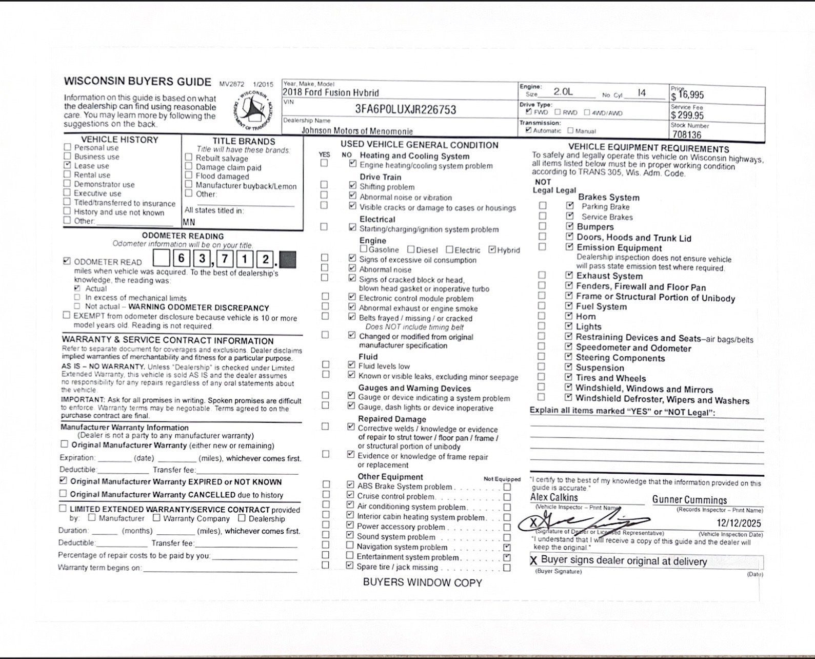 Price does not include sales tax, title, registration, or $299.95 service fee.