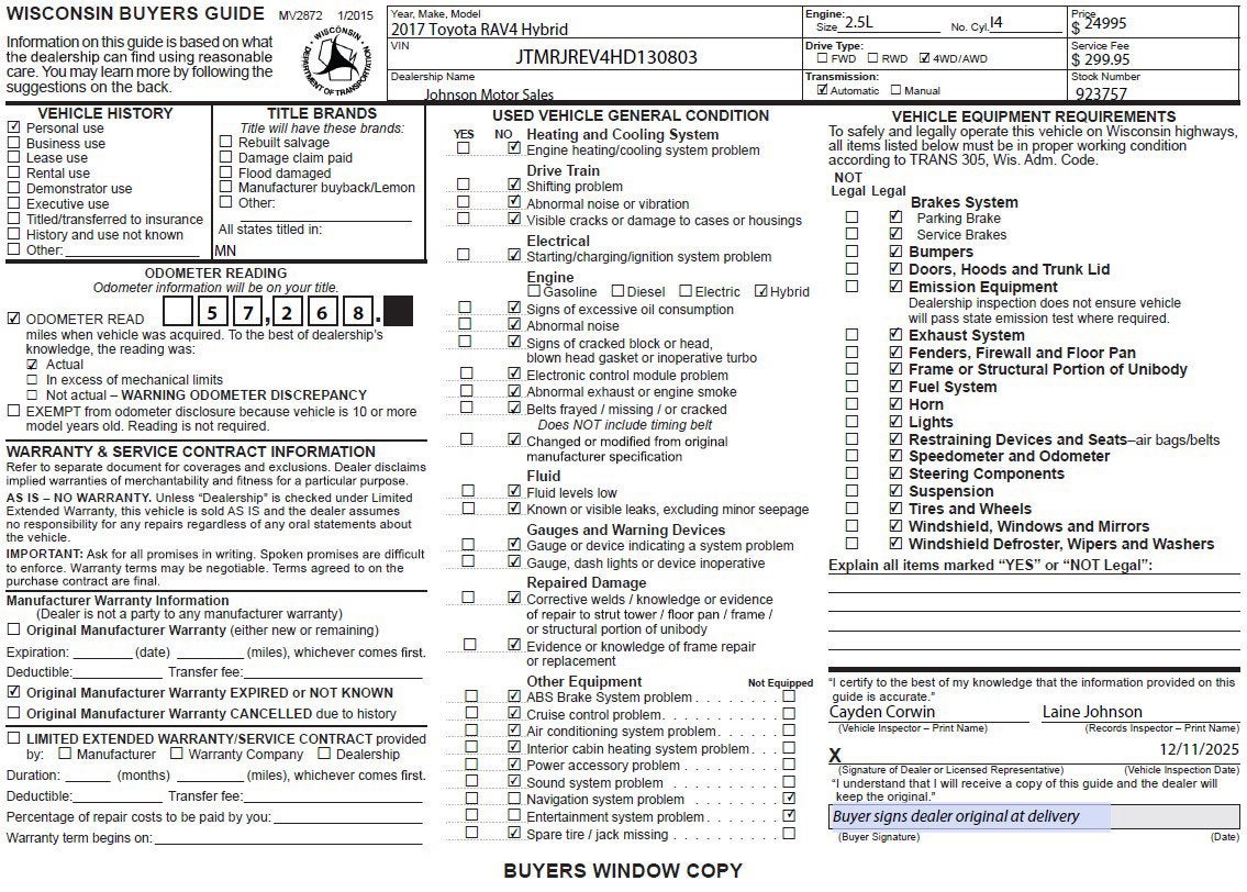 Price does not include sales tax, title, registration, or $299.95 service fee.