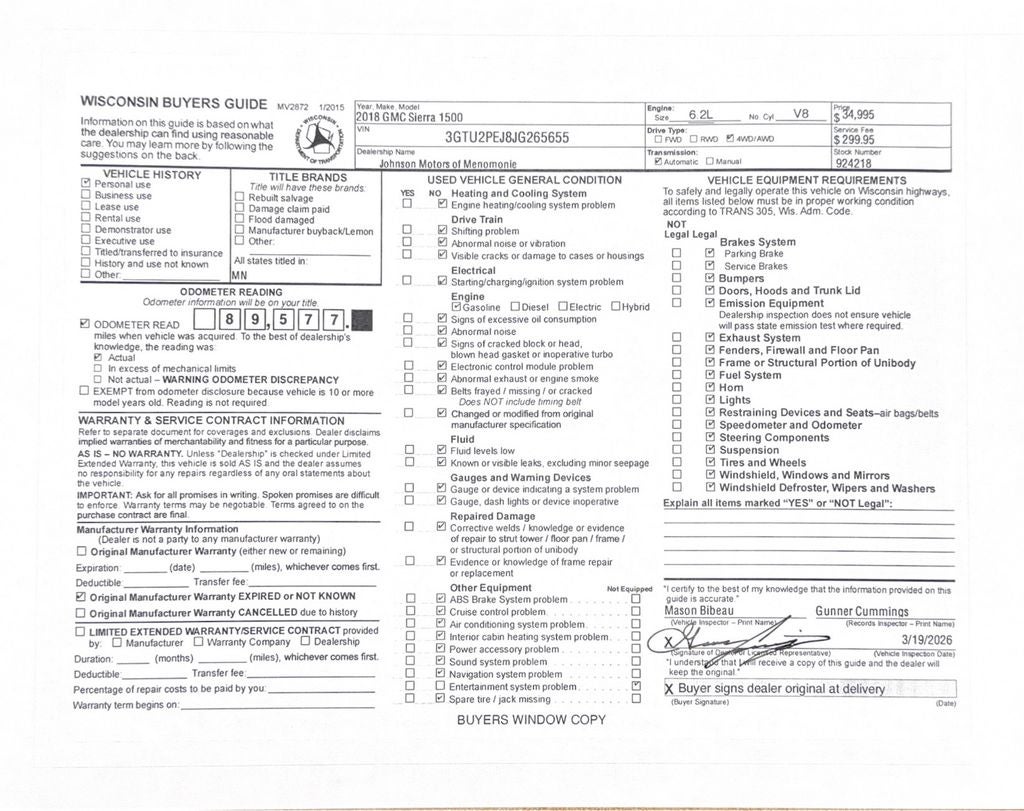 Price does not include sales tax, title, registration, or $299.95 service fee.