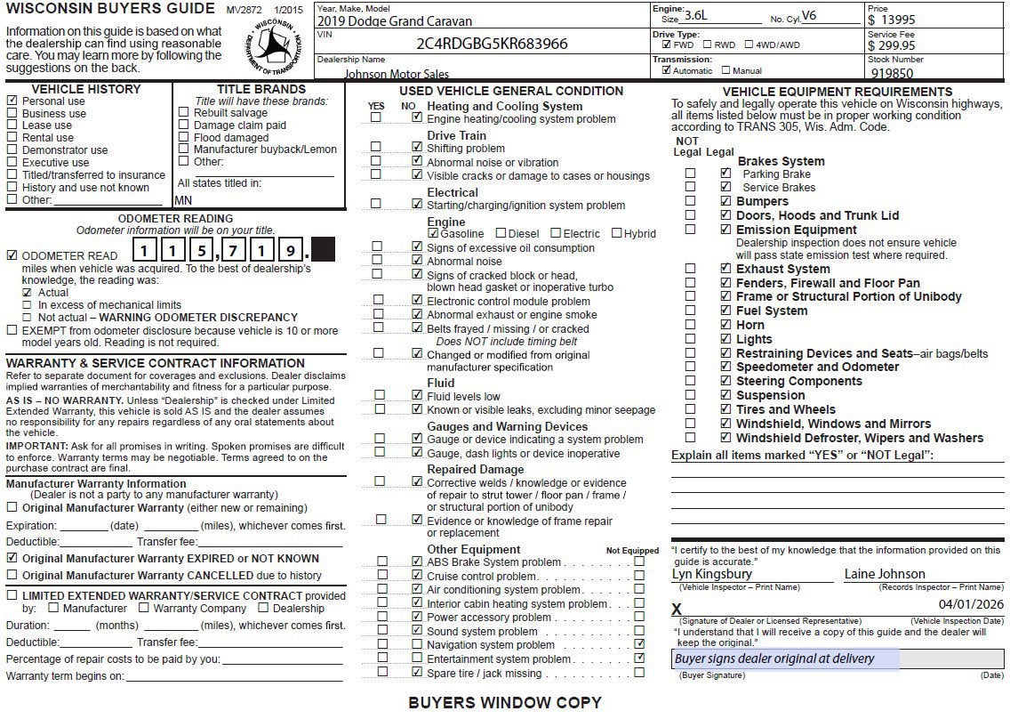 - Vehicle Name: Dodge Grand Caravan