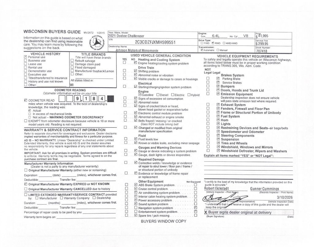 Come in for a quick visit at Johnson Motors of Menomonie, 1603 Hwy 12, Menomonie, WI 54751 to claim your Dodge Challenger!