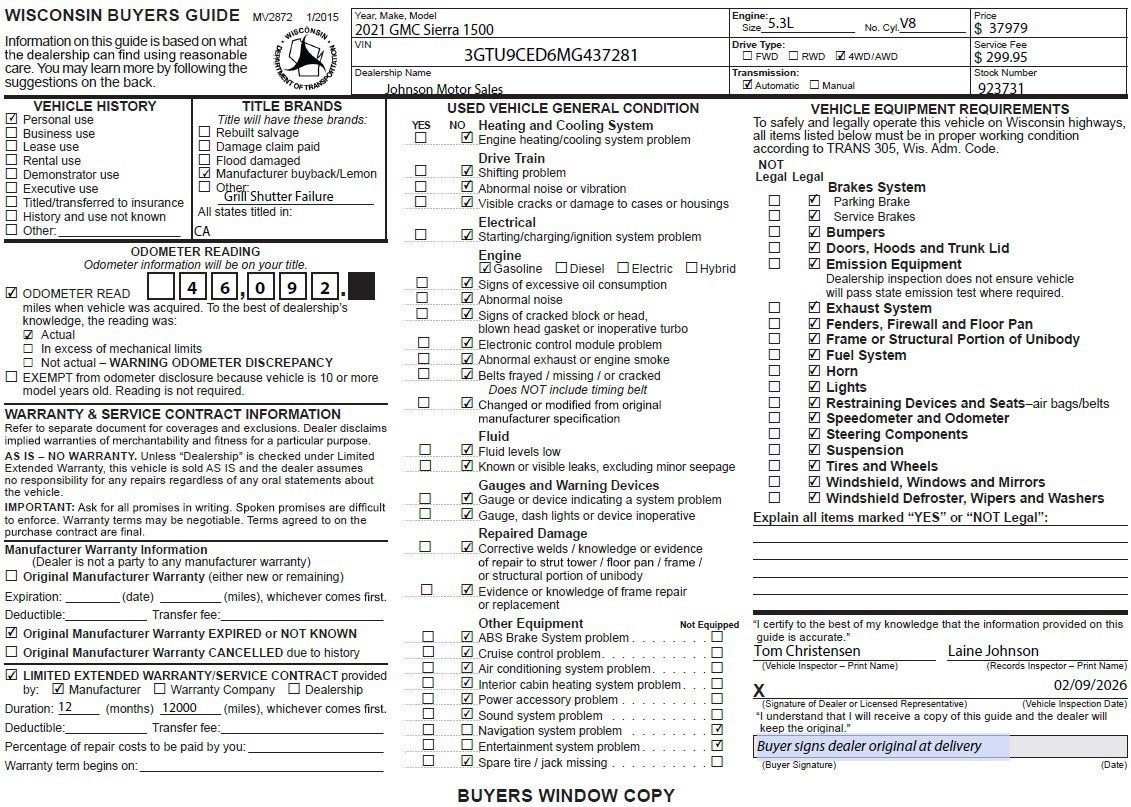 This vehicle comes with a bumper-to-bumper limited factory warranty 12 Months or 12,000 Miles. It also comes with a powertrain limited factory warranty that ends 8/21/2026 or 60029