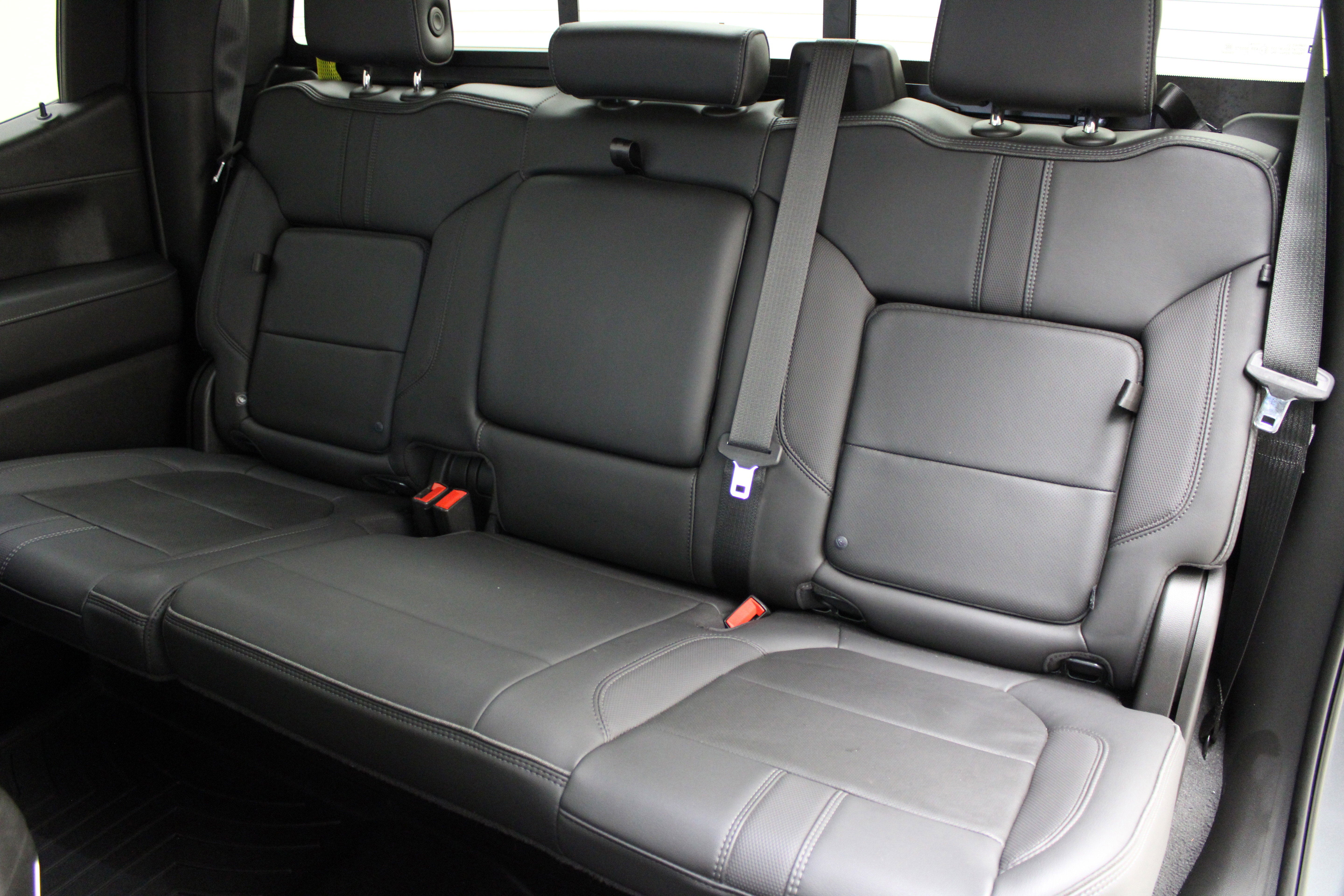 TAILGATE, MULTI-FLEX with six functional load/access features, NOTE: Auto release can be disabled if ball hitch is installed. See Owner's manual for details, TAILGATE, GATE FUNCTION MANUAL WITH EZ LIFT includes power lock and release, SKID PLATES, SEATS, FRONT BUCKET with center console (STD), SATIN STEEL METALLIC, REAR AXLE, 3.23 RATIO, NOT EQUIPPED WITH FRONT AND REAR PARK ASSIST, SEE DEALER FOR DETAILS (Vehicles built prior to 12-20-2021 include Front and Rear Park Assist. Certain vehicles built on or after 12-20-2021, will be forced to include (00Z) Not Equipped with Front and Rear Park Assist, which removes Front and Rear Park Assist. See the window label for the features on a specific vehicle.), NOT EQUIPPED WITH AUTOMATIC STOP/START (Vehicles built with a V8 engine and (MQB) 10-speed automatic transmission will have (NSS) Not Equipped with Automatic Stop/Start, which removes Automatic Stop/Start and its content.), JET BLACK, PERFORATED LEATHER-APPOINTED SEAT TRIM, HILL DESCENT CONTROL.