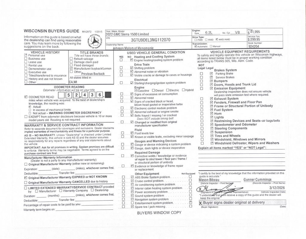 Price does not include sales tax, title, registration, or $299.95 service fee.
