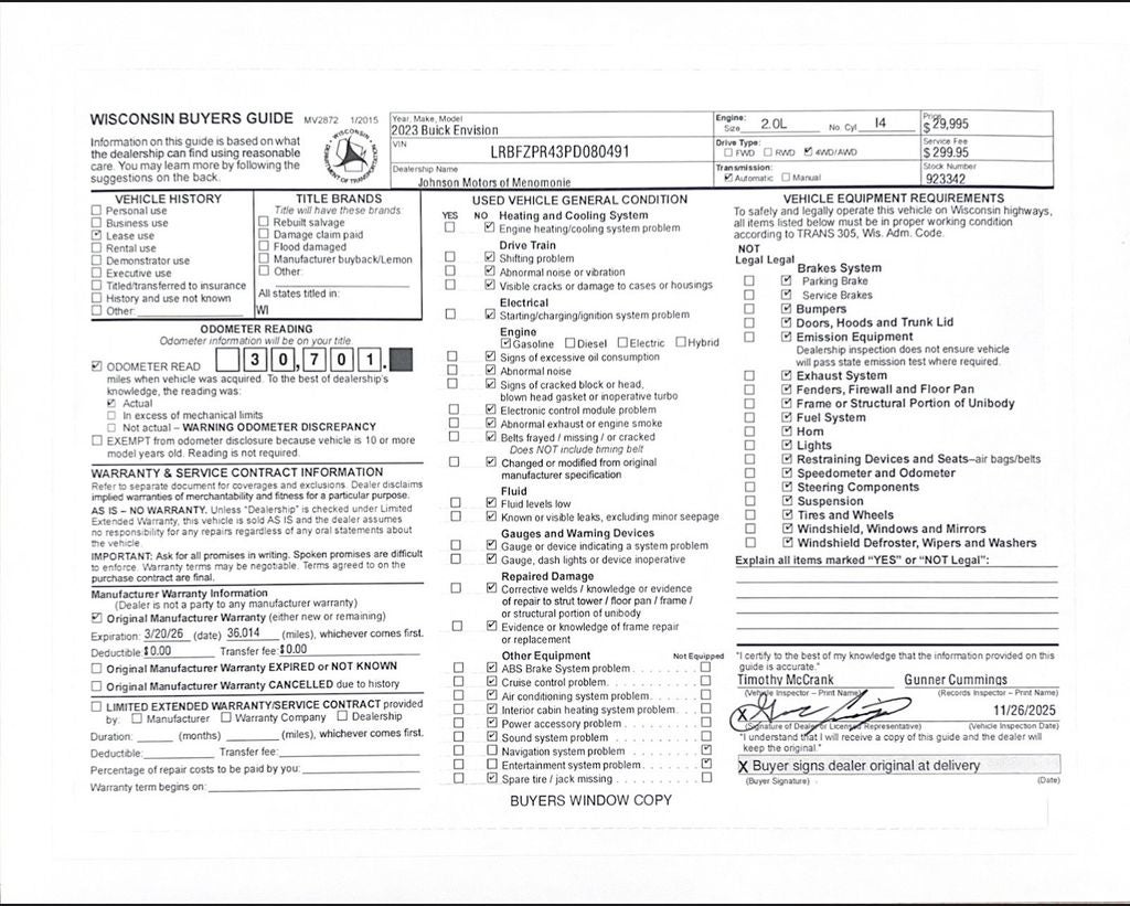 Price does not include sales tax, title, registration, or $299.95 service fee.