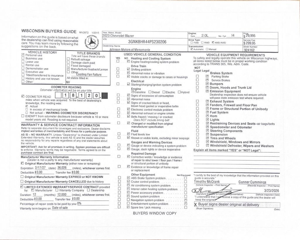 Price does not include sales tax, title, registration, or $299.95 service fee.
