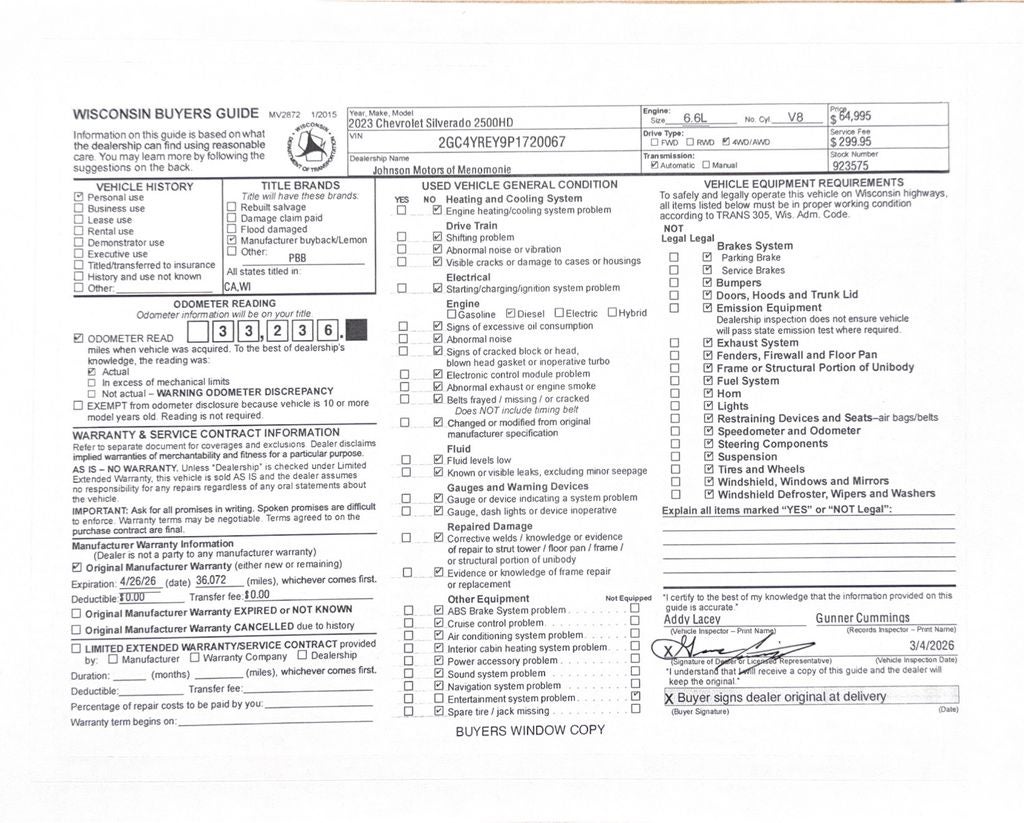 Price does not include sales tax, title, registration, or $299.95 service fee.