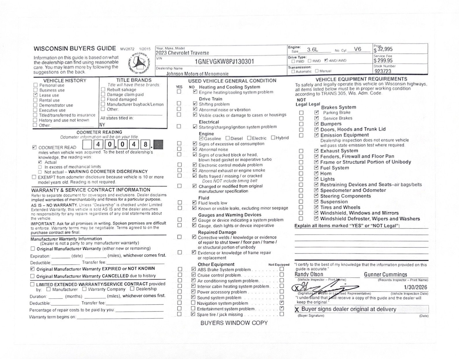 Price does not include sales tax, title, registration, or $299.95 service fee.