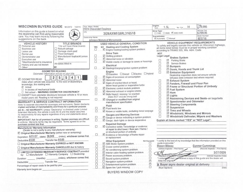 Price does not include sales tax, title, registration, or $299.95 service fee.