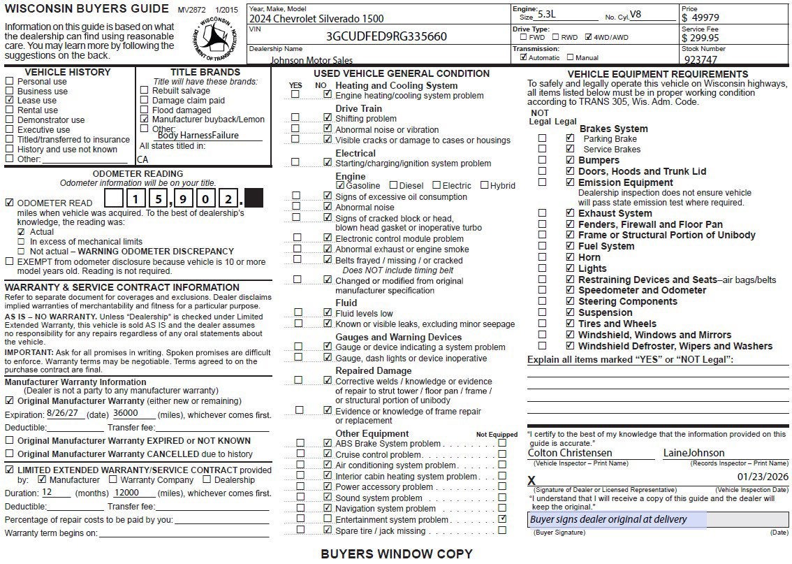 Price does not include sales tax, title, registration, or $299.95 service fee.. bb