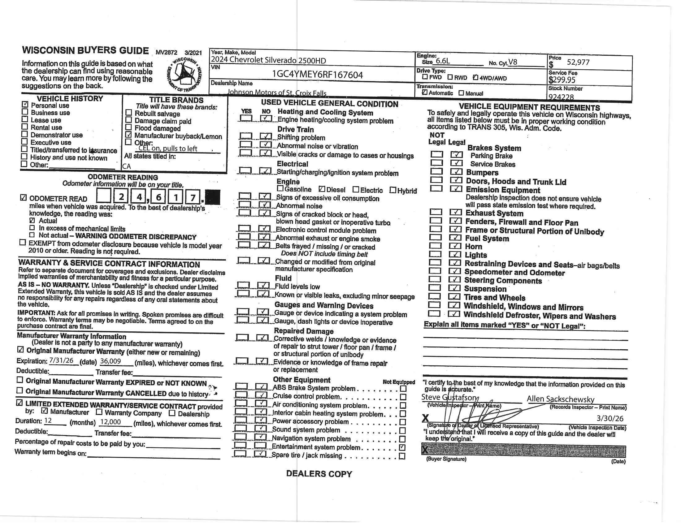 Dealer Comments