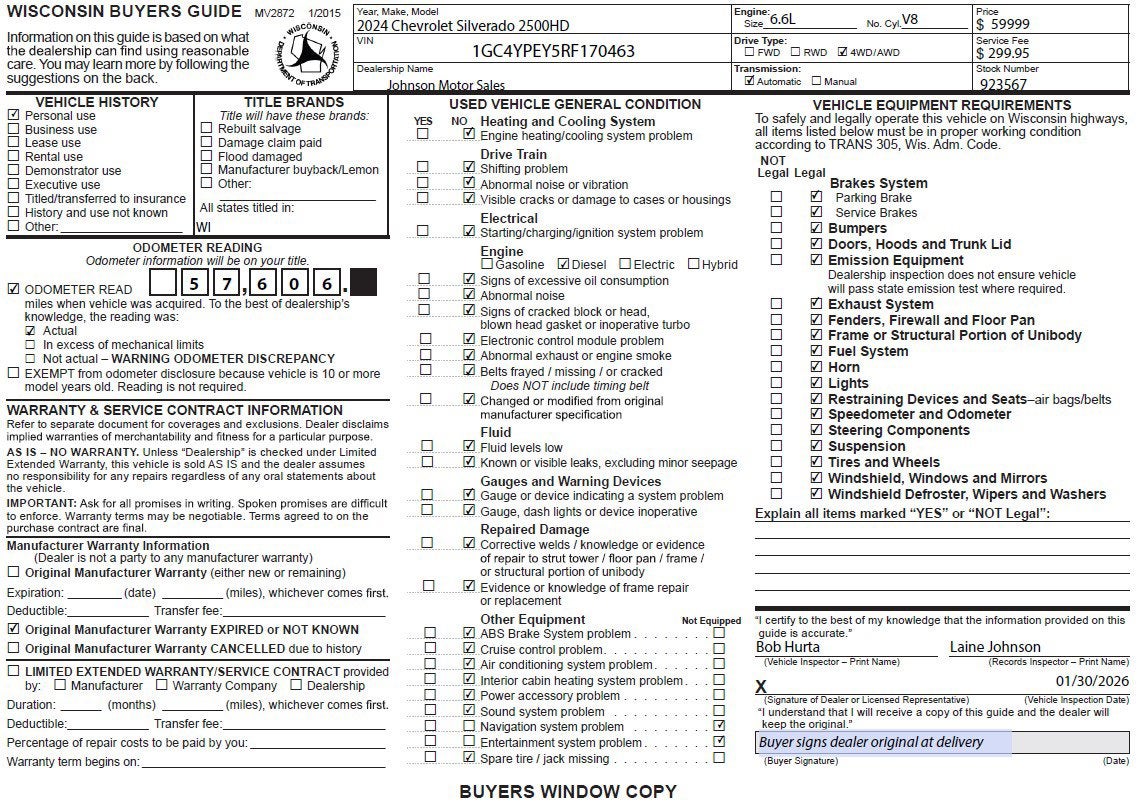 Price does not include sales tax, title, registration, or $299.95 service fee.