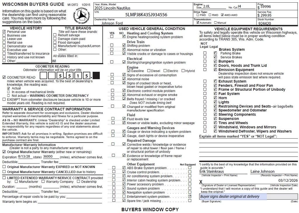 - Vehicle Name: Lincoln Nautilus