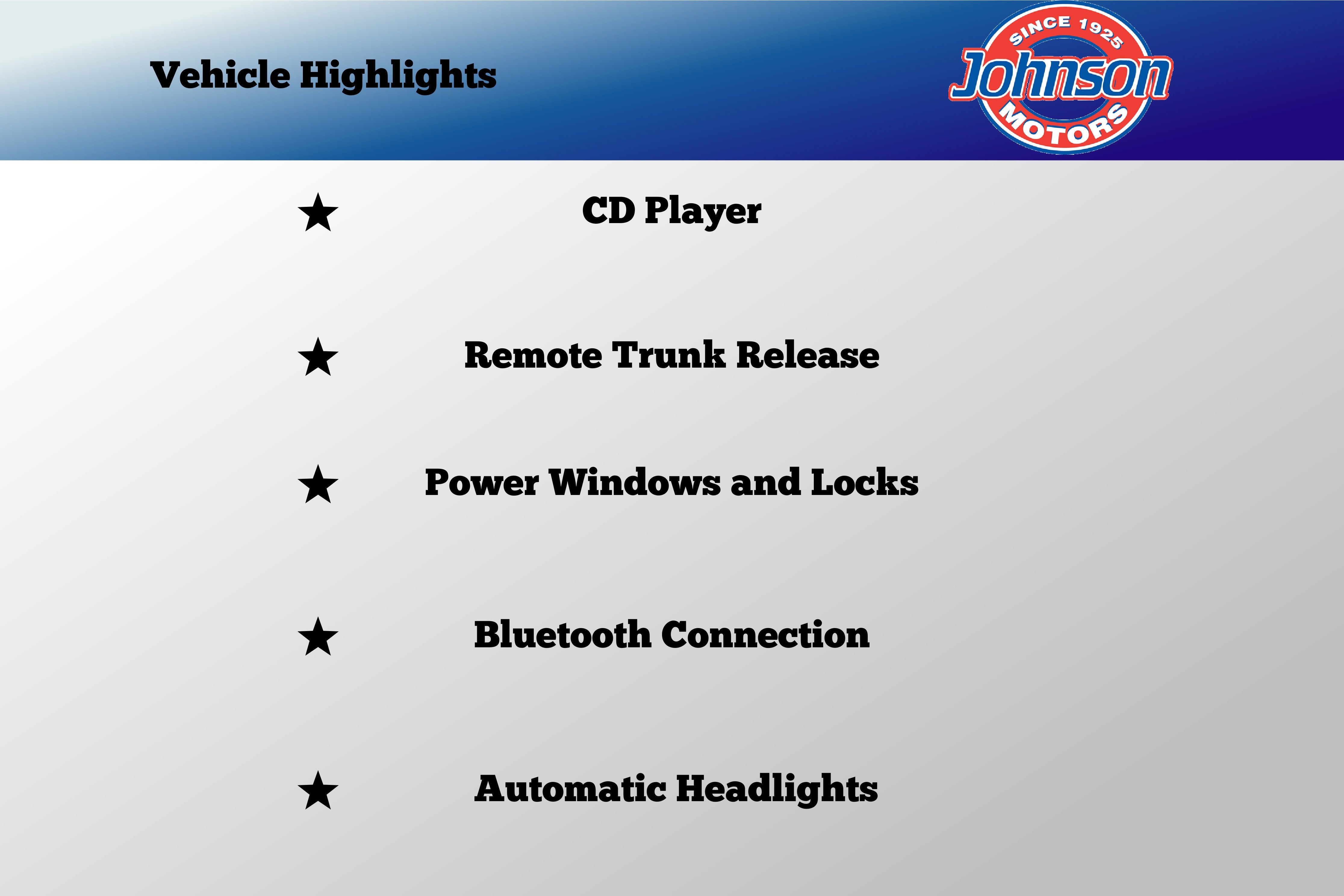 Includes standard features like AM/FM/CD/MP3 audio, auxiliary input, and cruise control --- all the essentials for a comfortable and entertaining ride. -