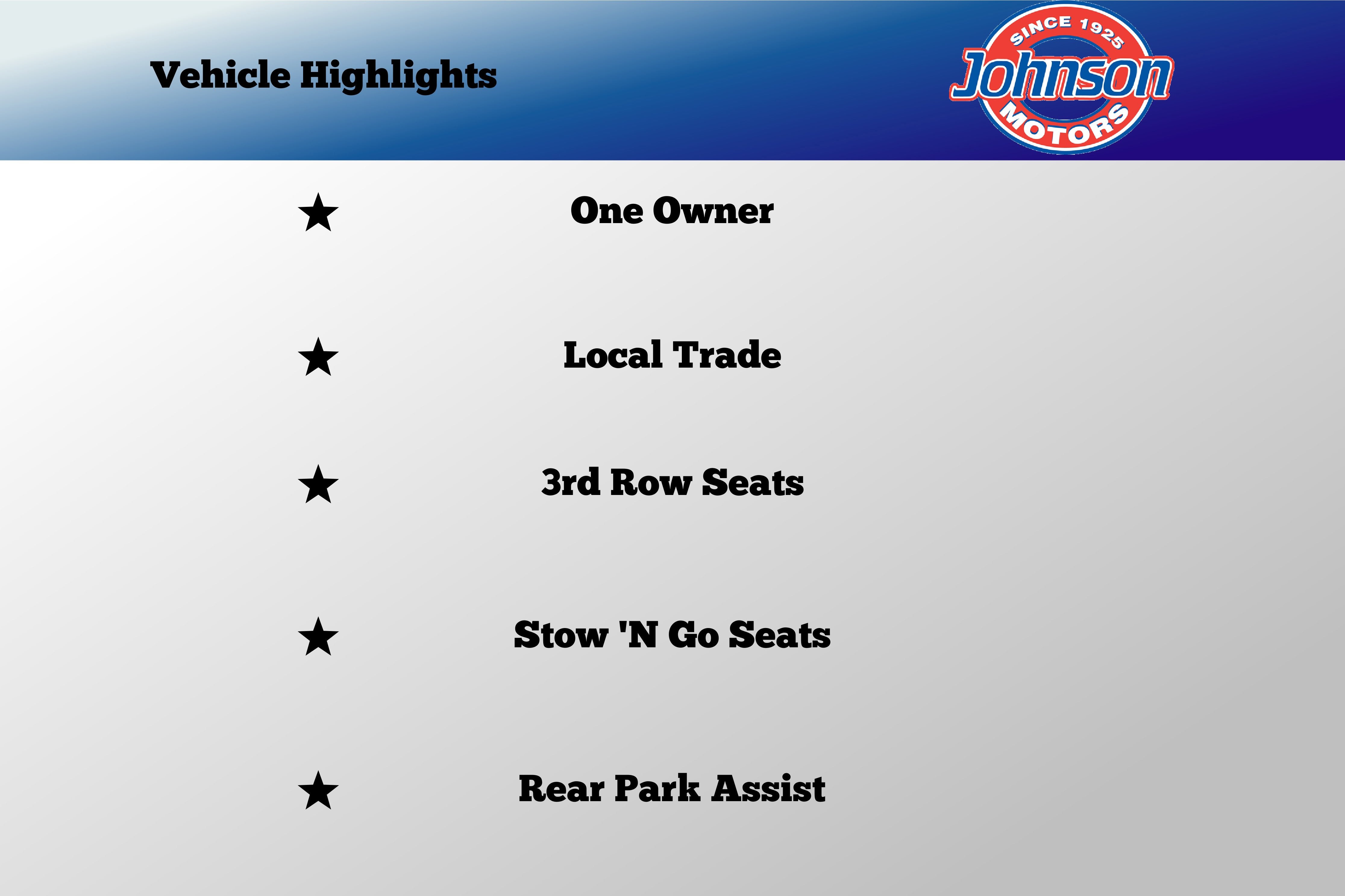 Backed by Experience: When you buy from Johnson Motors --- with 100 years of service --- you're choosing a dealer that stands behind what they sell.
